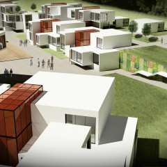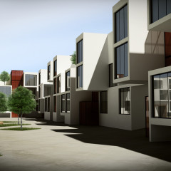 The main objective of this project was to create a green residential development to blend perfectly with a suburban area. The shape of the building creates modular boxes with specific dimensions of 3 X 3 X 3 meters. In this way, blocks consisting of two buildings each at 45 degree angles were achieved.