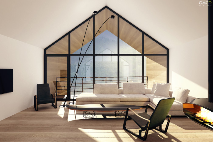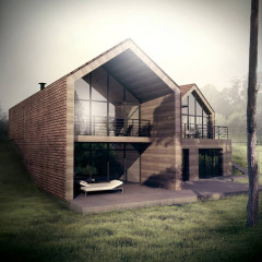The building was fit into a slope and from the side of the street appears to be a single story building. The overall shape of the structure consisted of separate segments – a daytime zone, sleeping zones, and garage. A gabled roof with ceramic tiles and the use of bricks refer to traditional architecture of Sandomierz.